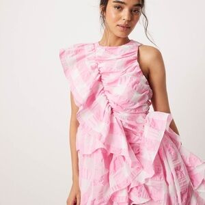 Chic pink ruffled dress with a playful design. Perfect for special occasions.
