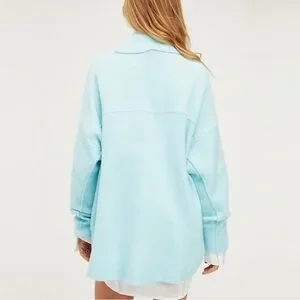 Free People Sky Blue Wool Blend Afterglow Mock Neck Pullover Sweater Size Small