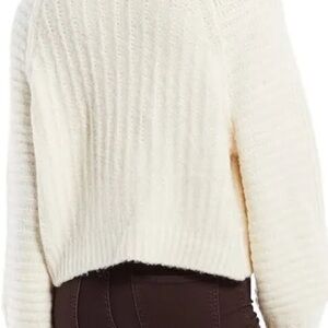 Black free people slub knit oversize crewneck sweater. Pretty eyelet and light rib pattern with bell sleeves. Sits right at the waist and is perfect with denim, wide leg pants, or dressed up for a casual evening out. Lightweight and slightly oversized. Classic Free People styling is always timeless.