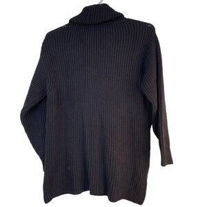 Free People Slouchy Black Rib Mock Neck Sweater Tunic Side Slit Bulky