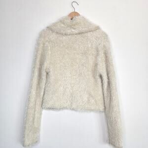 Free People Mina Fuzzy Sequin Tie Front Cardigan Cream Ivory Size Large