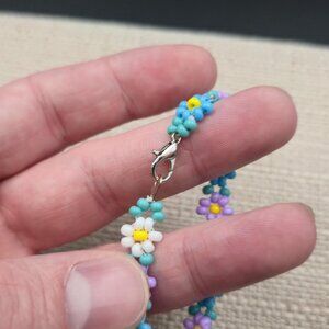 6.25 Inch Sterling Silver Colorful Bead Flowers Petite Bracelet A6775