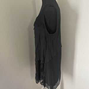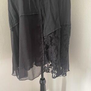 VTG PRETTY ANGEL Sz M Black Lace Trim Side Slits Tunic Top Whimsigoth Patchwork