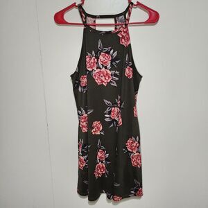 Nine Britton Floral Halter Mini Dress Trapeze Knit Keyhole Back LP Pockets