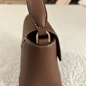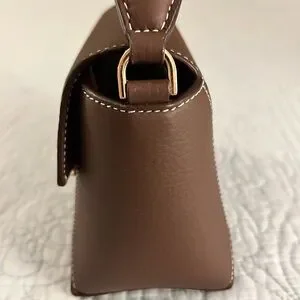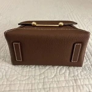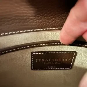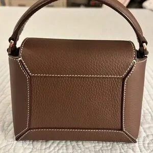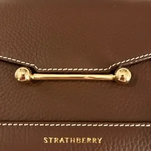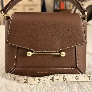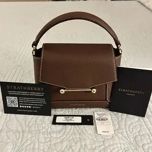 Hi there I am selling a like-new Strathberry "Mosaic" top handle bag in grain leather and polyester in the gorgeous colorway Chocolate with beautiful white contrasting stitching. This color is no longer available online.