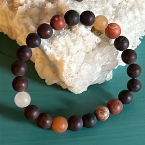1 Mixed stone Ibis Jasper, Milky Quartz, and Mahogany Obsidian bead stretch bracelet