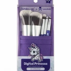 Discover the convenience of The Crème Shop Digital Princess Mini Travel Brush Set. This set includes five essential makeup brushes in a stylish purple case. Perfect for on-the-go beauty enthusiasts.