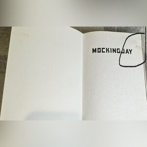 Mockingjay by Suzanne Collins Large Print Softcover Edition- The third book in Suzanne Collins's worldwide bestselling Hunger Games trilogy. Small marks, circled in photos
