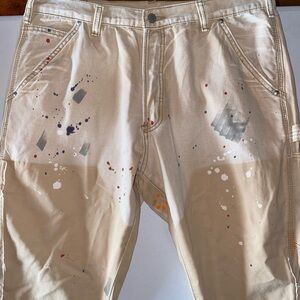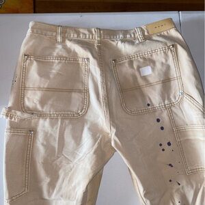 MNML NWOTs Flare Denim Pants - Khaki with Paint Splatter | B243 | Size 34