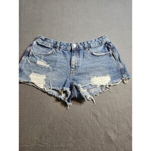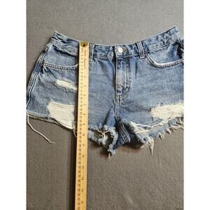 TOPSHOP Moto Shorts Womens 6 Blue Denim Jean Shorts Distressed Biker