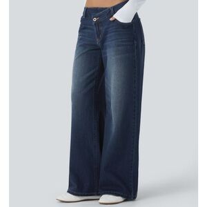 Halara Flex™ Asymmetric Low Rise Baggy Wide Leg Washed Casual Jeans
