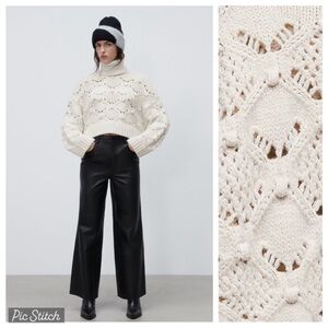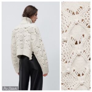 Zara NWT Cozy White Turtleneck Sweater with Side and Arm Buttons