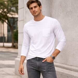Design: Crew neckline, long sleeves, chest pocket