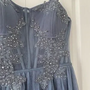 Windsor Blue Mesh Corset Prom Dress