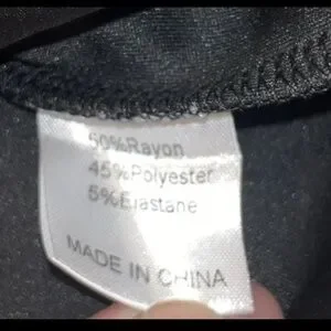 Material composition 50% Rayon, 45% Polyester, 5% Elastane