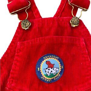 Step back in time with these classic, genuine vintage OshKosh B'gosh overalls! Made in the USA, these iconic bright red corduroy overalls are in excellent condition with no signs of wear. They feature the charming "OshKosh Kennel Klub" patch on the bib pocket, sturdy brass hardware, and adjustable straps. Perfect for a retro look or durable playtime!
