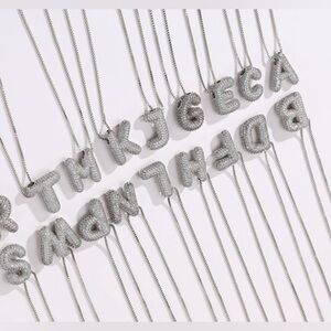 Initial Pave Rhinestone Bubble Balloon Necklace, a sparkling and personalized statement piece that exudes charm and elegance. This necklace features a pendant shaped like a whimsical bubble balloon, adorned with dazzling pave rhinestones and customized with your chosen initial. The intricate detailing and shimmering stones add a touch of glamour to your ensemble, making it perfect for special occasions or adding a dash of sparkle to everyday wear.