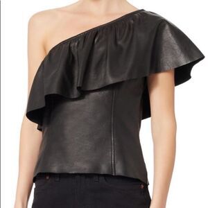 NWT A.L.C. Davos Lamb Leather Black Crop Top One Shoulder Ruffle Size 0