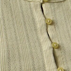 J Crew Pointelle short-sleeve knit cardigan Belmont Khaki Large