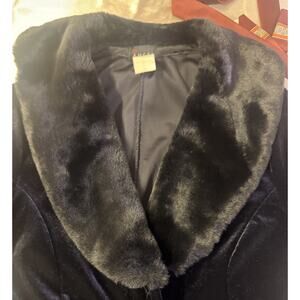 Vintage 90s Goth Formal Velour Robe/Coat Faux Fur Collar/Cuff Dark Romance Domme