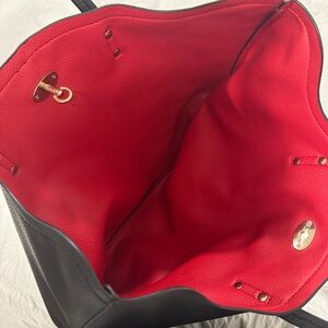 Elegant Black Faux Leather Tote Bag with Red Lining | Women's Work Shoulder Bag