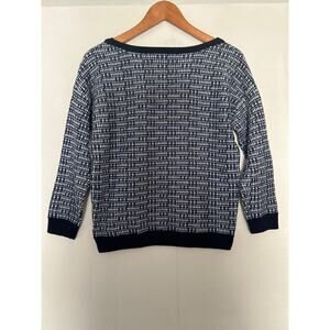 J.Crew Women’s Wool Blend Knit Sweater Navy Cream Size Small Crewneck Pullover