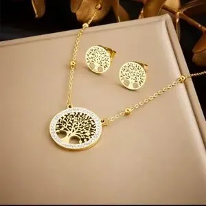 : #TreeOfLife #GoldPlatedJewelry #NatureInspiredJewelry #StainlessSteel #EarringsSet #NecklaceSet #ElegantJewelry #JewelryForHer #GiftIdeas #CrystalJewelry
