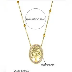 : This stunning Tree of Life Necklace and Earrings set is a perfect blend of elegance and symbolism. The necklace features a beautifully crafted pendant with intricate tree designs, adorned with sparkling crystals, and paired with matching earrings. Made from high-quality gold-plated stainless steel, this set is perfect for any occasion, adding a touch of nature-inspired beauty to your outfit.