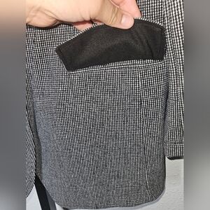 SEO keywords: Theory blazer size 12, women’s houndstooth jacket, ponte knit blazer, black white business blazer, stretch workwear, tailored blazer, office jacket EUC