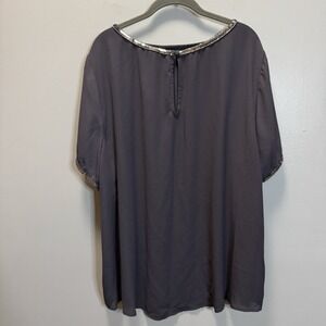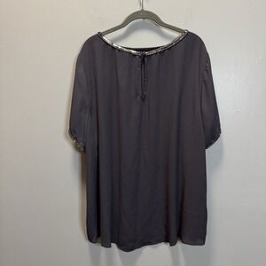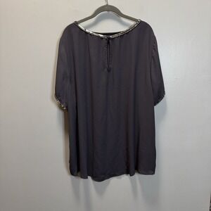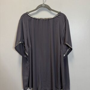 Torrid Women's Top Plus SZ 3 Dark Gray Cap Sleeve Blouse Silver Sequins&Sleeves