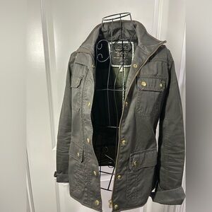 J. Crew Women's Resin Coated Dark Olive Twill Jacket
