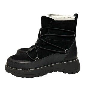 NEW Lucky Brand Womens Size 6.5 Caelia Pull On Black Suede Lug Sole Winter Boots