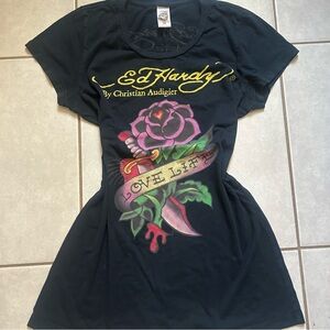 "Love Life" Rose Heart graphic T-shirt black Ed Hardy by Christian Audigier