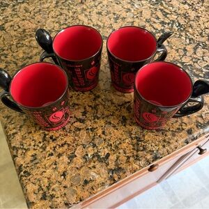Set of 4 Stylish Black and Red Ceramic Mugs with spoon for Dining