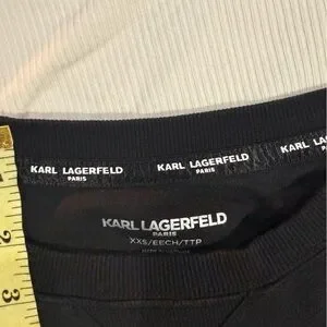 Elegant black sweater with silver trim. Iconic Karl Lagerfeld embroidery. Perfect for any occasion.