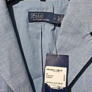 Polo by Ralph Lauren Long Chambray Cotton Blazer Jacket Size 4 NWT