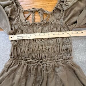 Free People Cassidy Romper Smocked Balloon Sleeve Olive Green Size Medium