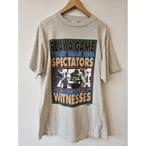 Vintage Play A Game No Spectators Shirt Mens Large Gray Football Witnesses 90s