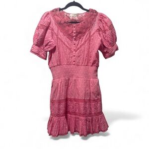LoveShackFancy Jaislyn Boho Coquette Mini Dress | Hot Pink Guava Cherry | Medium