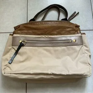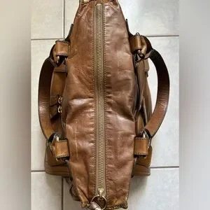 Chloé Bay leather tote bag in a distressed brown color