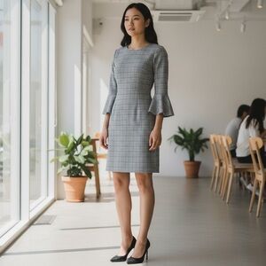 White House Black Market Plaid Dress peplum sleeves