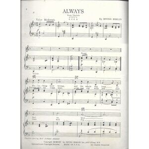This vintage sheet music of Irving Berlin's "Always" offers a classic piece for musicians and collectors. Featuring arrangements for voice and ukulele, it reflects timeless charm suitable for enthusiasts of early 20th-century music.