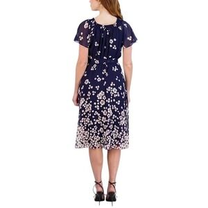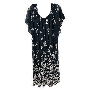 Keywords: Sandra Darren dress, plus size dress, navy floral dress, midi dress, short sleeve dress, smocked waist dress, flutter sleeve dress, women's dress, elegant dress, casual dress, daytime dress, summer dress, spring dress, printed dress, size 20W dress