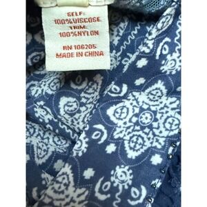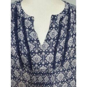 Sundance Women's Small Blouse Top Navy Blue White Floral Sheer Long Sleeve