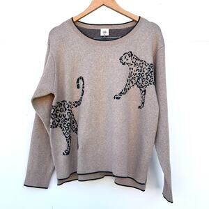 CAbi Cheetah Pullover Sweater Tan Neutral Sweater Medium Cotton Soft Cozy