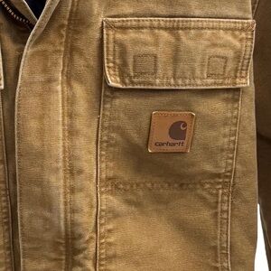 Rugged Carhartt jacket. Size Medium. A light stain under the front pocket as shown. Again I don’t use chemicals so it will probably come out in the first wash.