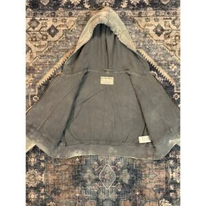Free People Mazzie Hooded Denim Bomber Jacket Cropped Eyelet Lace Patches
