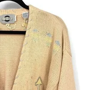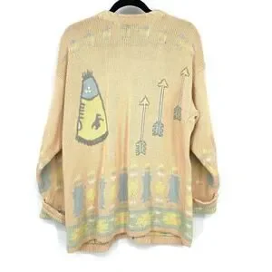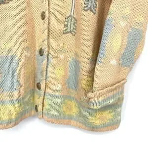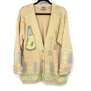 Vintage Chaus Sport V-Neck Cardigan Sweater Womens Sz M Peach Teepee Arrow Print