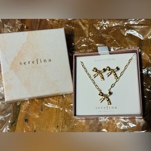 New Anthropologie Serefina Gold Bow Earrings and Bow Necklace Set & Free Gift