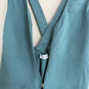 Zara Seamless Sage Green Knit Jumpsuit Sz M L